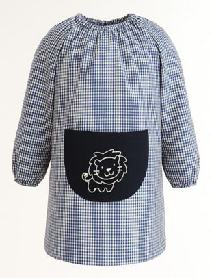 Bata infantil a cuadros disponible en color turquesa, fucsia y naranja.