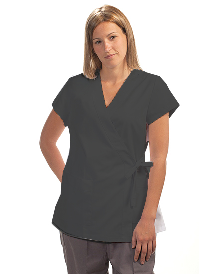 Kimono de señora de manga corta con cuello pico. Cruzado y abrochado al lado con cintas.
